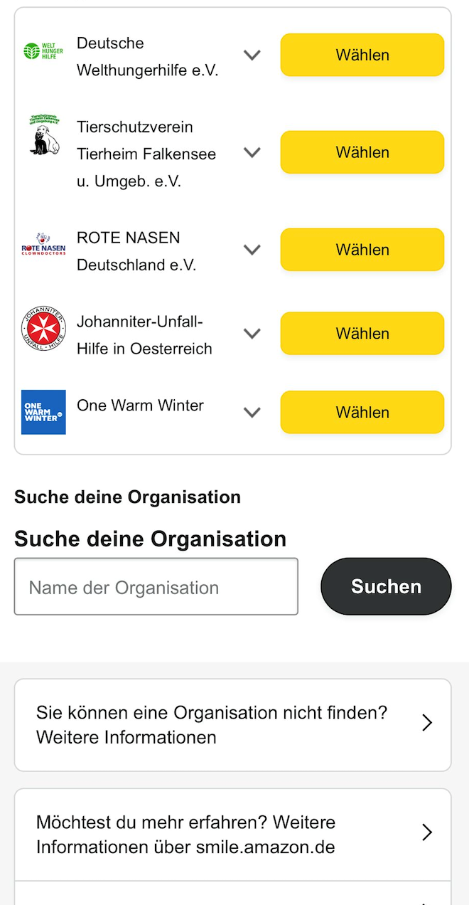 - Über diesen Link (https://smile.amazon.de) auf die Amazon Smile Seite gehen.